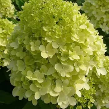 Кустарник высотой более 1-1,5 метра с округлой кроной. Ширина до 2 м. Время цветения: Цветет с июля по сентябрь крупными ширококоническими соцветиями. Окрас цветка: Соцветия состоящие из стерильных цветков бледно-лимонного или зеленоватого цвета, затем розовеют. Цветы гортензии Лаймлайт распускаются из светло-желтых почек и начинают жизнь с зелено-кремового цвета. Затем созревают до сливочного цвета и, наконец, имеют кремовый розовый румянец в начале осени. Помимо цветов, листья также представляют большой интерес: они имеют оттенок зеленого цвета и мелко зазубрены по краям - они создают идеальное обрамление для больших цветковых головок.