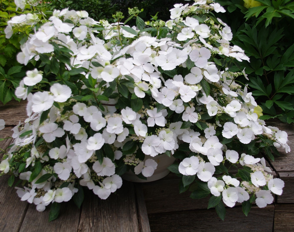После первого цветения на новых побегах появляются новые терминальные цветочные почки, благодаря чему период цветения продлевается до осени. Растение, усеянное цветками, имеет более широкий спектр применения в саду или будет идеальным свадебным цветком, поскольку сияющий белый цвет символизирует невинность и чистоту, грацию и элегантность.